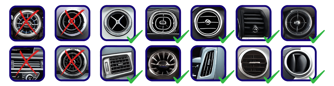 Geschikt voor Ronde Ventilatieroosters: Ideaal voor auto’s met ronde ventilatieroosters zoals in de Mercedes A-Klasse (t/m 2017), B-Klasse, C-Klasse, E-Klasse, S-Klasse, GLA, GLC, en Audi A1/A3. Ook geschikt voor de Mini Cooper (t/m 2013), SMART 451, FIAT 500, Audi TT, Ford Mustang, Jeep Wrangler enz.