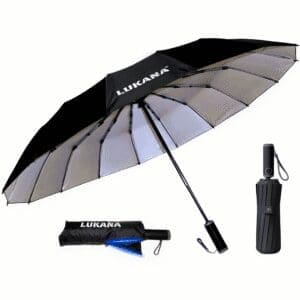 De Lukana Stormparaplu is speciaal ontworpen voor maximale duurzaamheid, stevigheid en gebruiksgemak. Dankzij de 16 versterkte ribben biedt deze paraplu uitzonderlijke stabiliteit, zelfs bij orkaanachtige windstoten tot 140 km/h. Waar andere paraplu’s snel omklappen of breken, blijft de Lukana moeiteloos overeind.